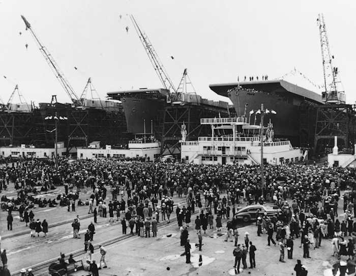 „Sposób, w jaki budowano okręty w stoczni Kaisera był fantastyczny i typowy dla amerykańskiej potęgi – a także wiedzy – zmobilizowanych w celu wygrania wojny. Budowa okrętów jest starożytną i skomplikowaną sztuką, a wszystkie branże okrętowe są ekskluzywnymi cechami, które zwykle wymagają długiej praktyki. Ale na bagnistych brzegach rzeki Columbia w ciągu jednej nocy wyrosła ogromna stocznia z jedenastoma pochylniami. Ludzie, co nie odróżniali dziobu od rufy, przyjechali ze środkowych stanów, żeby budować lotniskowce. Fabryki z całego kraju, w których robiono mosty, zbiorniki i maszyny rolnicze, zaczęły produkować części do okrętów. Wszystkie one zjeżdżały do Vancouver koleją i były umieszczane na liniach produkcyjnych, tak jakby chodziło o zwyczajne samochody. Poszczególne fragmenty były zespawane razem w jednej części stoczni, a potem ogromne żurawie przenosiły je na pochylnie.