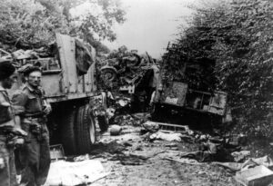 Historia bitwy pod Falaise, w czasie której wycofujące się jednostki niemieckie zostały okrążone i rozbite przez aliantów, w tym siły 1. Dywizji Pancernej.